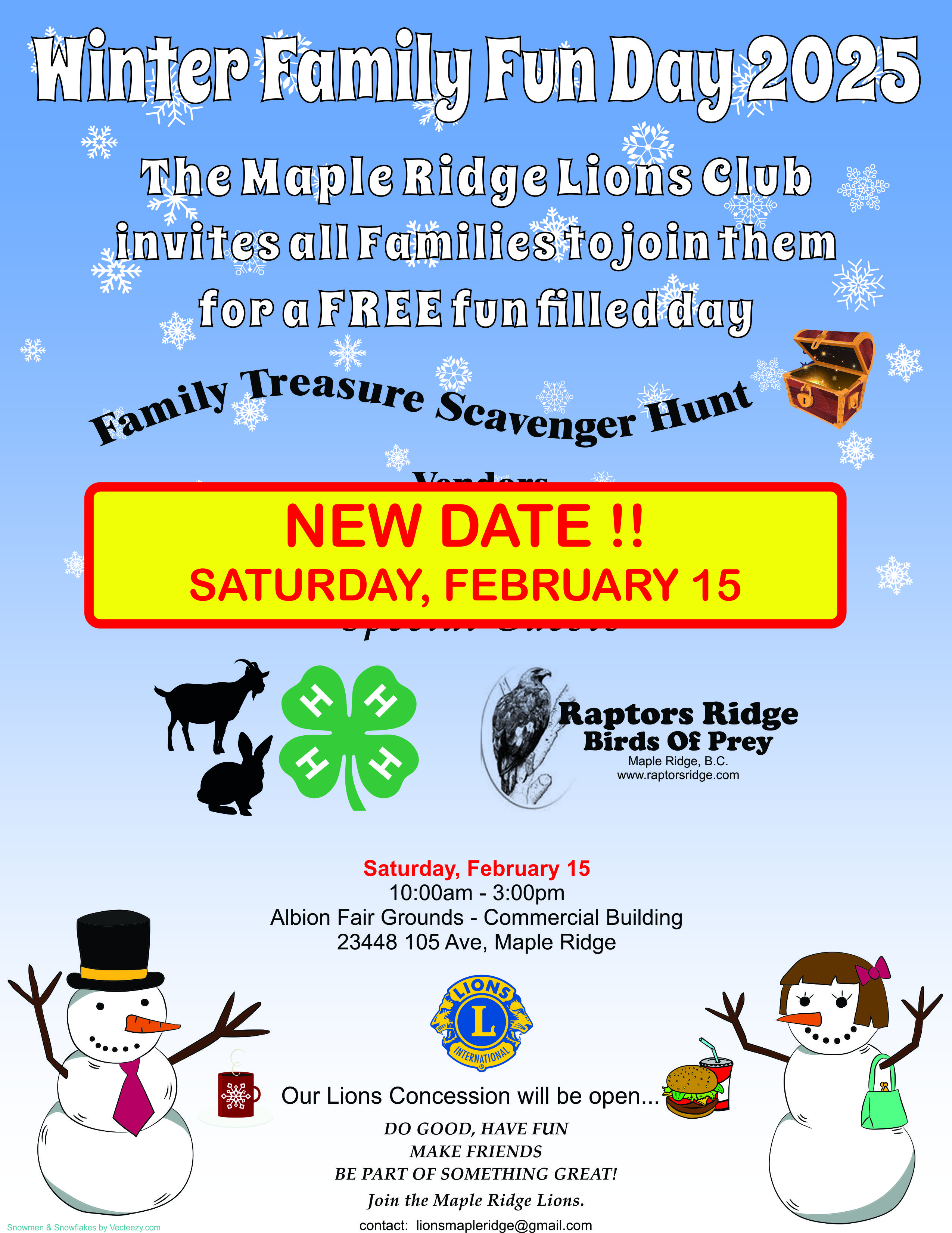 The Maple Ridge Lions Club invites all families to join them for a FREE fun filled day!