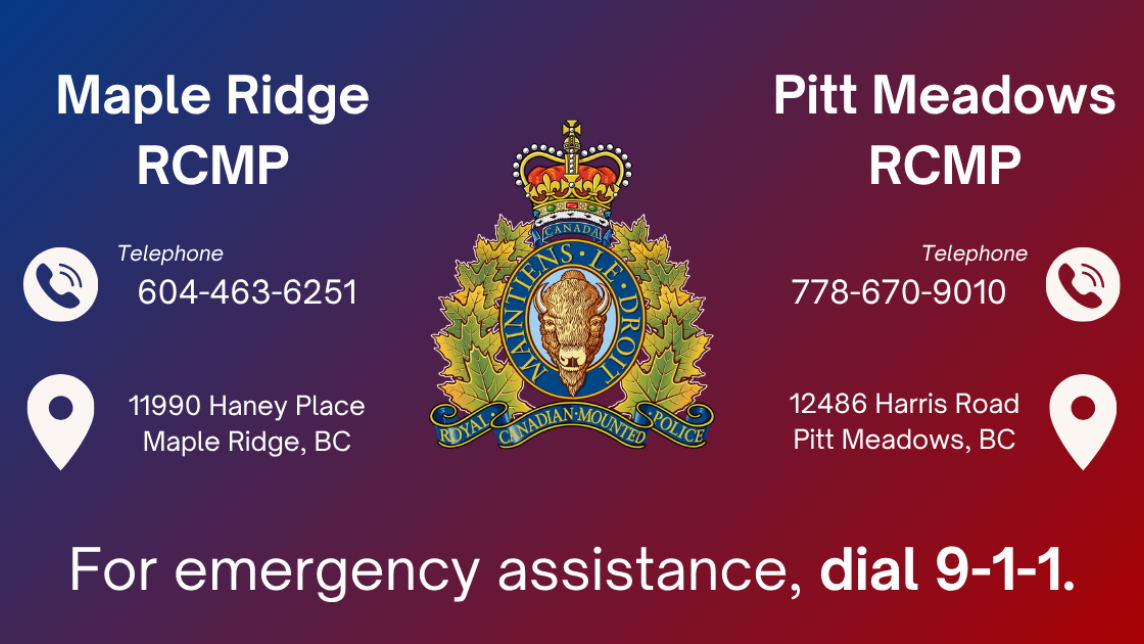 Daily police operations will remain a priority for both Maple Ridge and Pitt Meadows RCMP Detachments. In the event of an emergency, the public should continue to call 9-1-1.