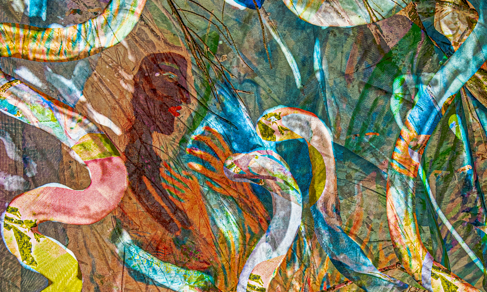 Drawing from childhood, teen years, and influence of her grandmothers, Duclos re-evaluates her personal experiences in multidisciplinary mediums. She sources materials directly from or inspired by her family homes such as curtains, bedsheets, window screens, and collections of milk glass (formerly off-limits decorations in her grandmother’s home) to create installations, sculptures, paintings, and digital artworks. By reconstructing inner worlds and past environments in a process of reparenting, Duclos reorients herself in the present.