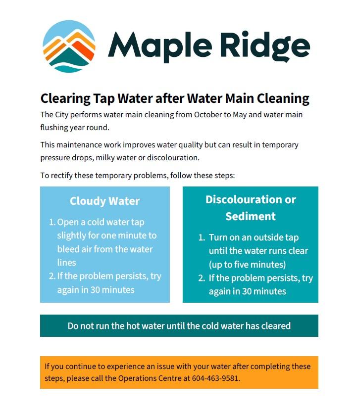 The City performs water main flushing annually from October to May.