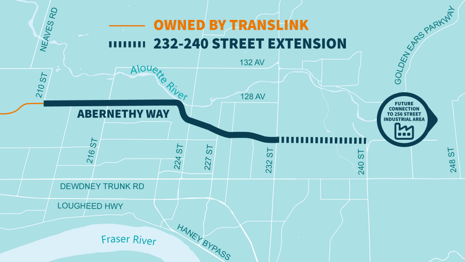 The Abernethy Way corridor is a key transportation and economic link to the industrial lands at 256 Street and a critical secondary route for the rapidly growing Silver Valley area. It also connects to Golden Ears Provincial Park, the most visited park in BC.